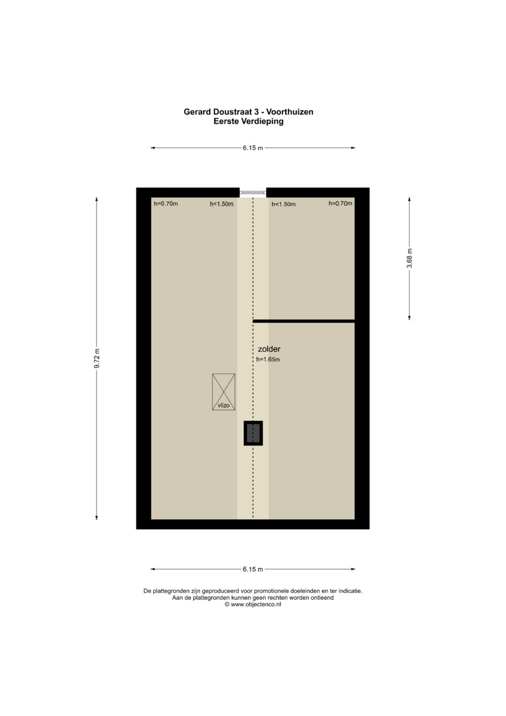 Zolderberging, bereikbaar middels een vlizotrap in de hal.