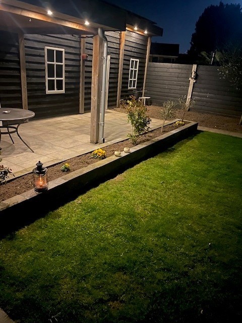 Zowel de voor- als achtertuin is fraai aangelegd en voorzien van sierbestrating en borders. Aan de achterzijde een fijn terras en In de achtertuin bevindt zich de houten berging, het sfeervol tuinhuis met openslaande deuren, de overkapping en de tweede garage. De verlichting maakt het geheel zeer sfeervol! Wat een heerlijke plekken om tot rust te komen. De achtertuin is ook bereikbaar via de loopdeur in de tweede garage. Op de bijgebouwen zijn zonnepanelen geplaatst.