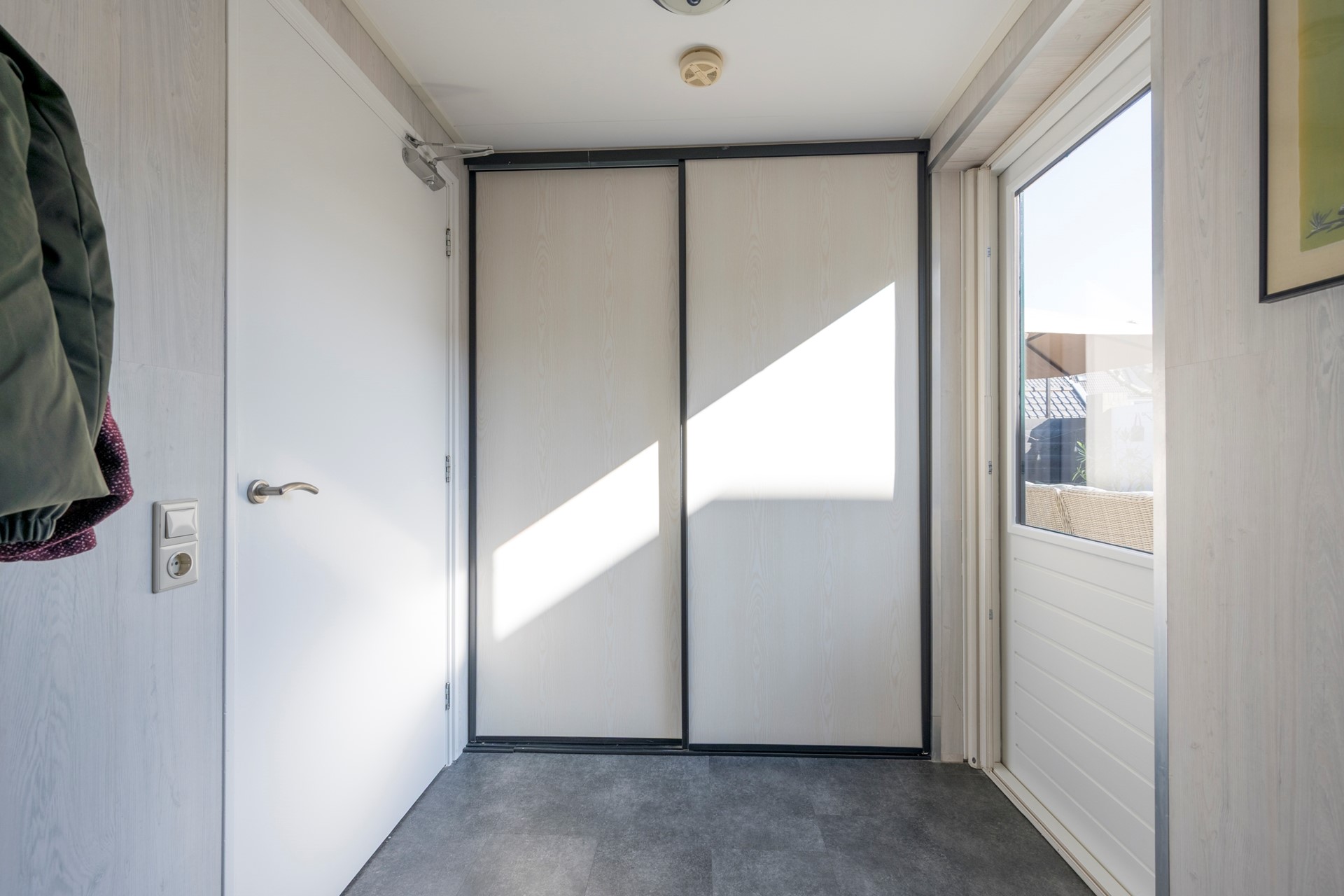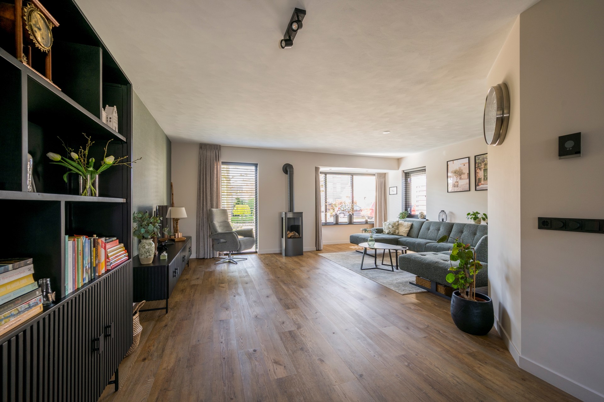 Overdekt entree/ de hal met trapopgang, meterkast en een toilet met fonteintje, geeft u toegang tot de fijne, lichte woonkamer, gesitueerd aan de voorzijde van de woning. Wat een royale leefruimte en ziet u zich al zitten rondom de gezellige gashaard? En de houten schuifdeuren in “industriële look” zijn toch wel een heel mooi detail in deze woning. Via deze stijlvolle houten industriële deuren komt u in de fijne woonkeuken met een schuifpui naar de achtertuin, wat het buiten naar binnen haalt! De gesloten woonkeuken is voorzien van een keukenblok in hoekopstelling voorzien van diverse inbouwapparatuur. Naast de keuken komt u in de bijkeuken met een vaste kastenwand en een deur naar het terras, de achtertuin en de garage. En u loopt zo vanuit de garage naar de serre in de achtertuin. Heerlijke plekken om van uw rust te genieten! De begane grond en de serre zijn voorzien van vloerverwarming. Wat biedt dit huis u een wooncomfort!